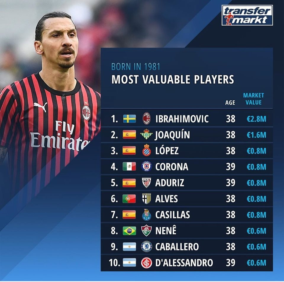 "Report"un məlumatına görə, İtaliyanın "Milan" klubunun hücumçusu Zlatan İbrahimoviç (2.8 milyon avro) ən bahalı oyunçu hesab olunub.