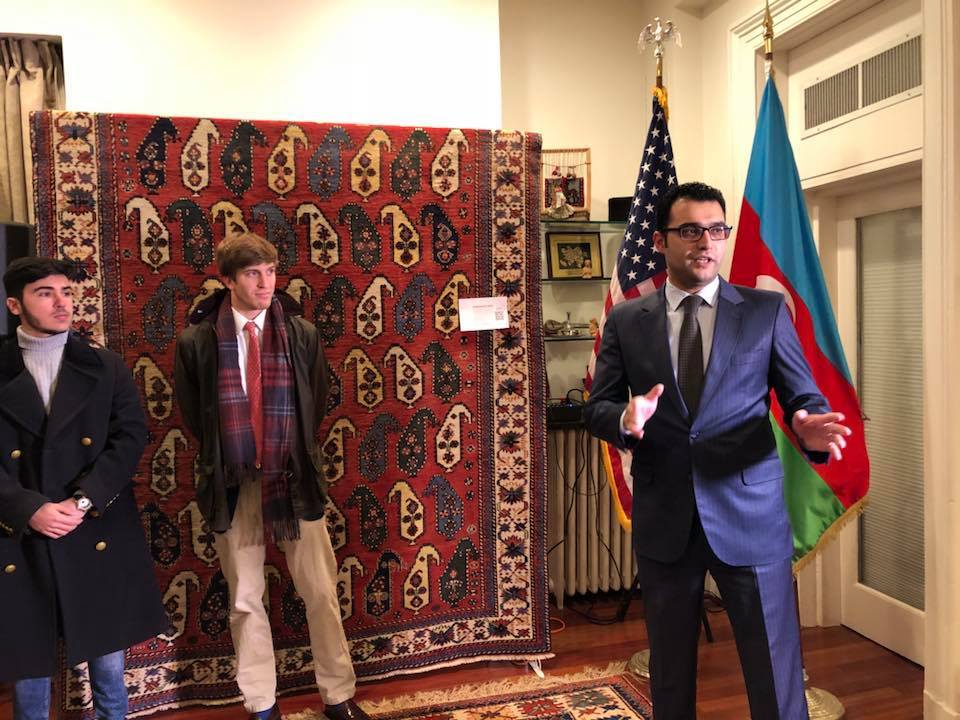 Azərbaycanın ABŞ-dakı fövqəladə və səlahiyyətli səfiri Elin Süleymanov Azərbaycan xalçalarının Vaşinqtonda sərgisinin mədəniyyətimizin və incəsənətimizin təbliğ edilməsi baxımından əhəmiyyətini vurğulayıb, xalçaların əsasən məcburi köçkün xanımlarımız tərəfindən toxunması faktını xüsusilə qeyd edib.