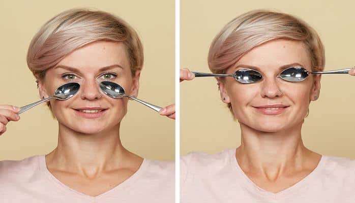 Qaşıqları soyuq suya salıb və təkrar gözünüzə qoyun. 5-7 dəfə təkrar edin. Bu üsul şişmiş göz qapaqları üçün təsirlidir.