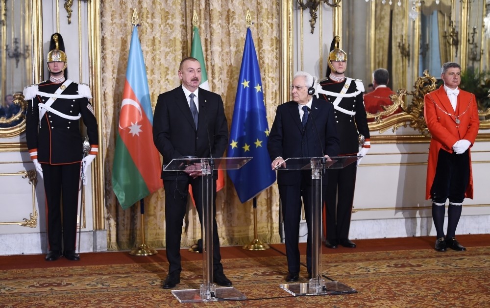Azərbaycan və İtaliya prezidentləri mətbuata bəyanatlarla çıxış ediblər