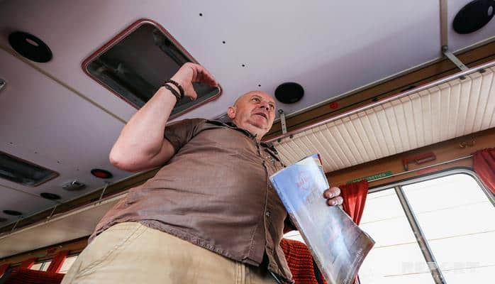 Tur və marşrutla bağlı “Report”un suallarını cavablandıran şirkətin nümayəndəsi Qehard Krüqer (Gerhard Krüger) deyib ki, Azərbaycana 18 sərnişinlə gəliblər: “Avtobusumuz 34 sərnişin üçün nəzərdə tutulub, amma bu dəfə 18 nəfərlə səyahətə çıxmışıq. Bundan əlavə 2 nəfər bələdçi və 1 sürücümüz var. Bələdçilərdən biri yerlidir. İki sürücümüz var idi. Tehrandan çıxanda ona zəng edib bildirdilər ki, anası dünyasını dəyişib. Ona görə də təcili Almaniyaya dönməyi qərara aldı”.