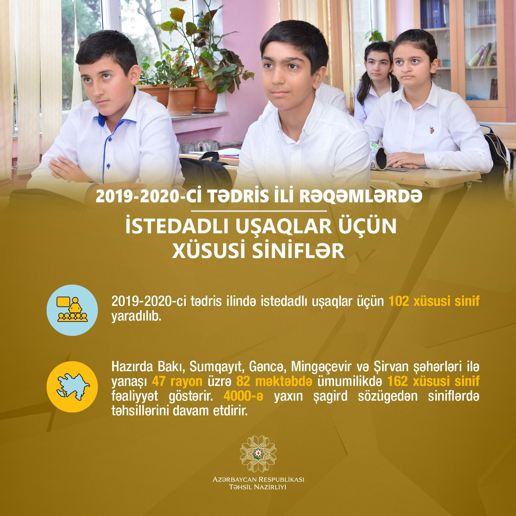 2019-2020-ci tədris ilində istedadlı uşaqlar üçün 102 xüsusi sinif yaradılıb.