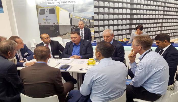 “Bakı Metropoliteni”nin istismar üzrə baş mühəndisi Əlixan Osmanovun rəhbərliyi ilə 5 nəfərdən ibarət nümayəndə heyəti sərgidə təqdim edilən yeniliklərlə tanış olub. Son illər dünyanın aparıcı texnologiyalarının tətbiqini ildən-ilə daha da genişləndirən yerli mütəxəssislər bu sərgidə nümayiş etdirilən dəmir yollarına texniki xidmət, işarəvermə, rabitə, tunel tikintisi texnologiyaları, hərəkətin təşkili, sərnişinlərə xidmət sahəsində son yeniliklərlə maraqlanıblar.