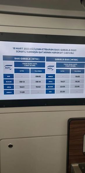 18 mart tarixindən etibarən “Azərbaycan Dəmir Yolları” QSC-nin Bakı-Qəbələ-Bakı sürət qatarı fəaliyyətə başlayır. Ens.az Oxu.az-a istinadən xəbər verir ki, bu gün bu istiqamətdə ilk rəmzi səfər baş tutacaq. Səfərdə rəsmi şəxslər, nəqliyyat ekspertləri və media nümayəndələri iştirak edirlər. Səfərin məqsədi Bakı-Qəbələ dəmir yolu xəttində və Qəbələ dəmir yolu stansiyasında görülən işlərlə tanış olmaqdır. Bu istiqamətdə hərəkət qrafiki də açıqlanıb. Belə ki, Bakı-Qəbələ və əks istiqamətdə qatarın yolda olma müddəti 3 saat 20 dəqiqə olaraq göstərilib.