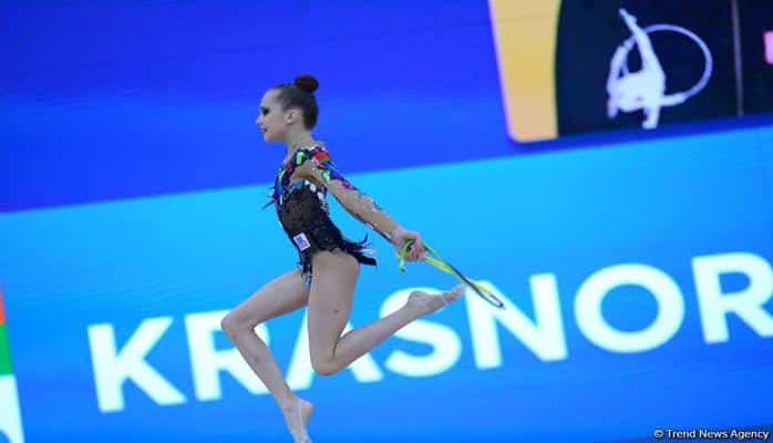 Trend-in məlumatına görə, bu gün ip, top, gürz və lentlə hərəkətlərdə fərdi proqramda, o cümlədən komandalar arasında qrup hərəkətlərində (beş halqa və beş lent) qaliblər müəyyənləşəcək.
