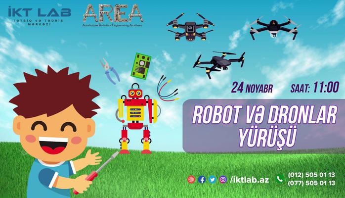 İKT LAB və Azərbaycan Robotexnika Mühəndisliyi Akademiyasının (AREA- Azerbaijan Robotics Engineering Academy) birgə təşkilatçılığı ilə uşaqlar və gənclər üçün “Robot və dronlar yürüşü” adlı çox əyləncəli və maraqlı seminar keçiriləcək.