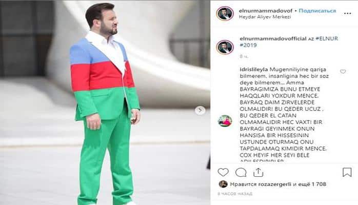 Oxu.Az xəbər verir ki, Elnurun klipdə əyninə geyindiyi, bayrağımızın rənglərini özündə əks etdirən kostyumu sosial şəbəkə istifadəçilərini qəzəbləndirib.