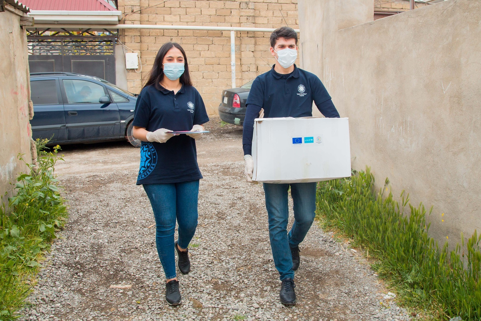 Maska və əlcəklərdə olan könüllülər ailələrə qida yardımı göstərir, həmçinin sosial media platformalarından istifadə edərək, yaxşı gigiyena və sosial məsafə mövzusunda məlumatlılığı artırır və dezinformasiyaya qarşı mübarizə aparırlar.
