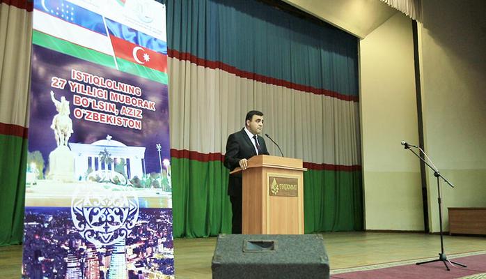 Diplomat bu il Azərbaycan və Özbəkistanın dövlət müstəqilliyinin 27-ci ildönümünü qeyd etdiyini söyləyərək, habelə Azərbaycan Respublikasının Prezidenti İlham Əliyevin Sərəncamı ilə Azərbaycan Xalq Cümhuriyyətinin yüz illiyi ilə əlaqədar bütöv bir ilin “Cümhuriyyət ili” elan edildiyini qeyd edib.