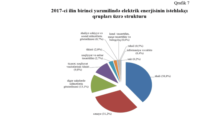 Sənayedə isə enerji istehlakı bu il 7,7% artaraq 3,1 mlrd kvt saat olub.