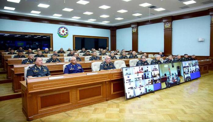 Müdafiə nazirinin müavinləri, qoşun növləri komandanları, nazirliyin baş idarə, idarə, xidmət rəisləri, eləcə də birlik komandirlərinin iştirakı ilə keçirilən müşavirəyə videobağlantı vasitəsilə cəbhə bölgəsində yerləşən birləşmə komandirləri və digər vəzifəli şəxslər cəlb olunub.