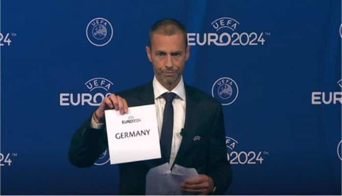 AZƏRTAC xəbər verir ki, UEFA prezidenti Aleksander Çeferin futbol üzrə Avropa çempionatına Almaniyanın ev sahiblik edəcəyini elan edib.