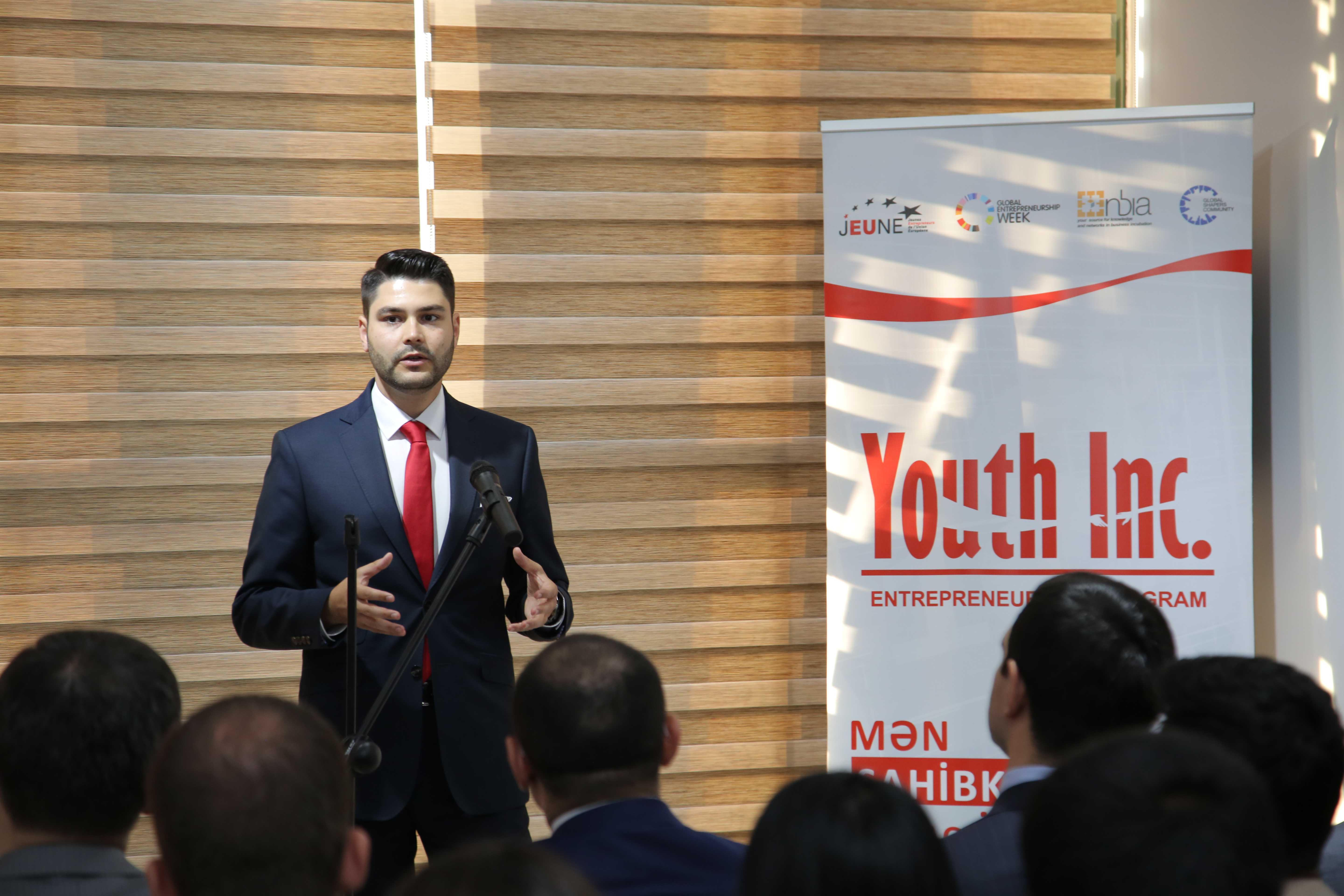 Açılış nitqində çıxış edən “Youth Inc.” Sahibkarlıq Proqramının həmtəsisçisi Şahin Seyidzadə proqramın 2011-ci ildən bəri olan fəaliyyət yolu, uğurları və nəticələri haqqında məlumat verib. Şahin Seyidzadə öz çıxışında 2011-ci ildə ölkə başçısı Cənab Prezident İlham Əliyevlə görüşün nəticəsində atılan addımın artıq bu gün Azərbaycanda sahibkarlığın inkişafına böyük töhfələr verdiyini qeyd edib.