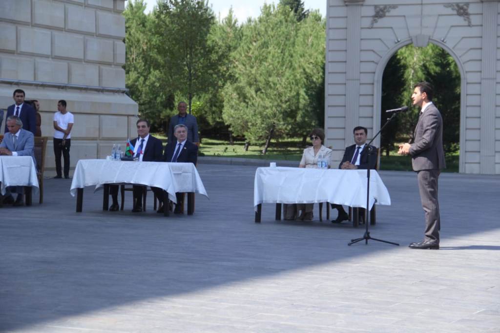 Heydər Əliyev adına Park-Kompeksində gerçəkləşən tədbirdə Gəncə Şəhər İcra Hakimiyyətinin başçısı Niyazi Bayramov, Azərbaycanın Rus İcmasının sədri, Milli Məclisin deputatı Mixail Zabelin , “Rossotrudniçestvo”nun Azərbaycandakı nümayəndəsinin rəhbəri İrek Zinnurov, Azərbaycandakı “Rus Dili Müəllimləri” Assosiasiyasının sədri Lyubov Yakunina, millət vəkili Naqif Həmzəyev, struktur rəhbərləri, şagird və müəllimlər iştirak ediblər.
