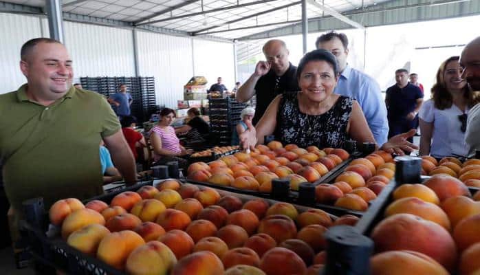 S.Zurabişvili hesabında yerləşdirdiyi fotolara “Corcia ştatı, bizdə də şaftalılar var” sözlərini yazıb.