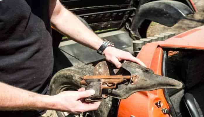Maraqlısı ondadır ki, həmin avtomobilin içindən köhnə silah da çıxıb.