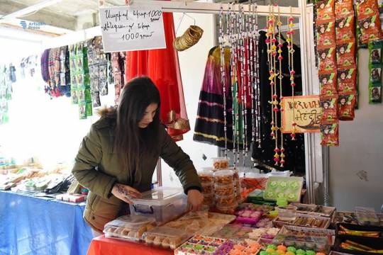 Şirkətin Hindistanın müxtəlif şəhərlərində fəaliyyət göstərən 12 nümayəndəsi Xankəndindəki ermənilər üçün 16 pavilyon təşkil edib. Sərgidə müxtəlif hind malları: mebel, geyim, əl işləri, ədviyyat və s. satılır. Hind şirkət rəhbəri sərginin sonuncu günü dekabrın 7-də məişət cihazları və digər malların uduşa qoyulacağı lotereya oynanılacaq. N.Ansari Xankəndində xüsusi Hindistan mağazası da açacağını vəd edib.