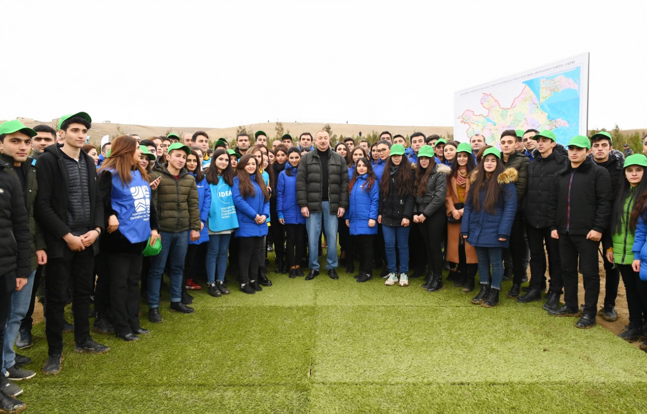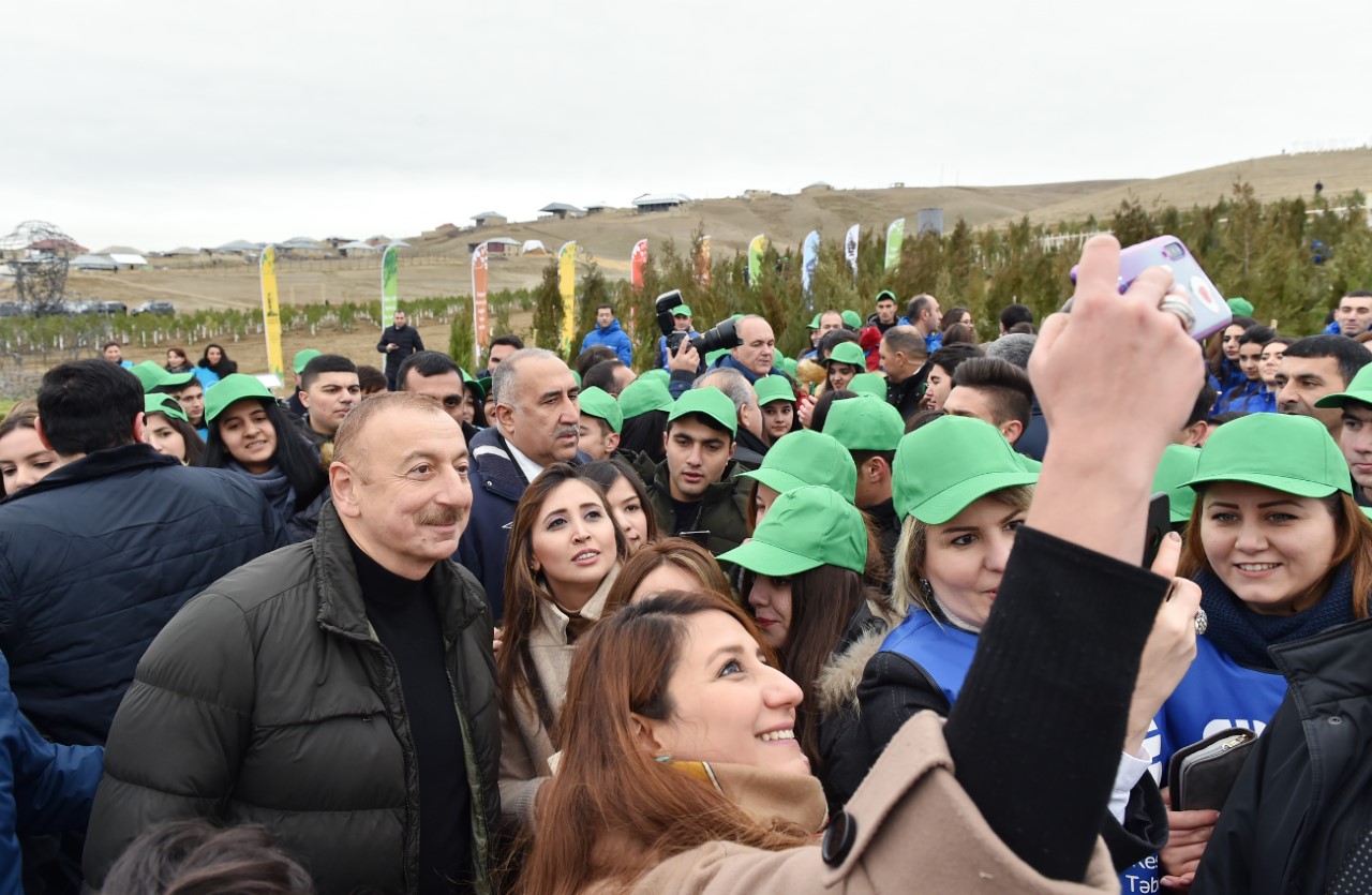 "Qafqazinfo" xəbər verir ki, dövlət başçısı ilə Birinci vitse-prezident Mehriban Əliyeva ağac əkiblər. Daha sonra aksiyada iştirak edən gənclərlə xatirə şəkilləri çəkdiriblər.