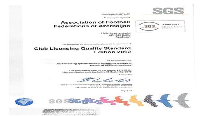 İsveçrənin SGS şirkəti 2018-ci ildə AFFA-nın Lisenziyalaşdırma qrupunun fəaliyyəti ilə bağlı apardığı yoxlamanın nəticələrini açıqlayıb.
