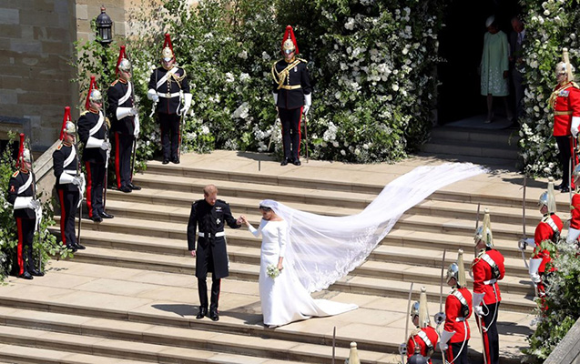 Gəlin paltarının 4, 5 metr uzunuluğundakı fatası və Kraliça 2-ci Yelizabetin Meqana verdiyi “Queen Mary” tacı da satılacaq.