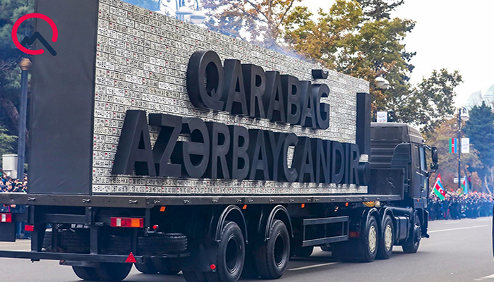 Xəbər verdiyimiz kimi, Zəfər paradında Vətən müharibəsi zamanı Azərbaycan Silahlı Qüvvələrinin işğaldan azad olunan ərazilərdə ermənilərdən qənimət götürdüyü avtomobillərin nömrə nişanlarından hazırlanmış instalyasiya nümayiş olunub.