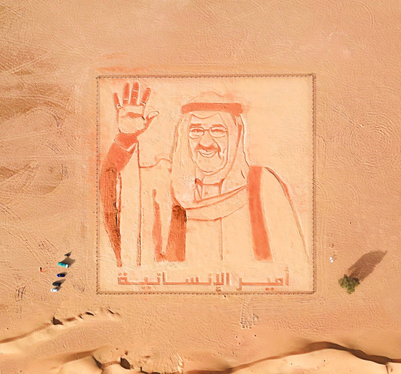 Küveyt əmirinin qum üzərində portretini çəkdilər