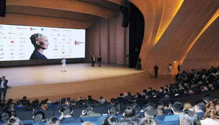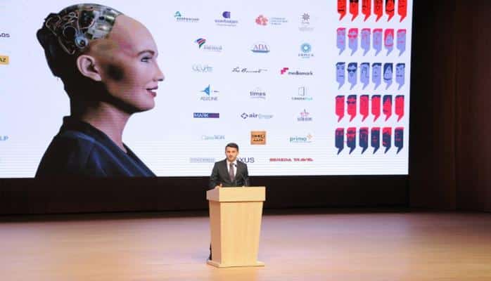 Tədbirin çıxışçıları arasında süni intellekt sahibi, robot “Sofiya” da olub. O bildirib ki, fərqli mədəniyyətlərin, dinlərin təmsilçilərini bir araya gətirən Azərbaycanın böyük potensialı var.