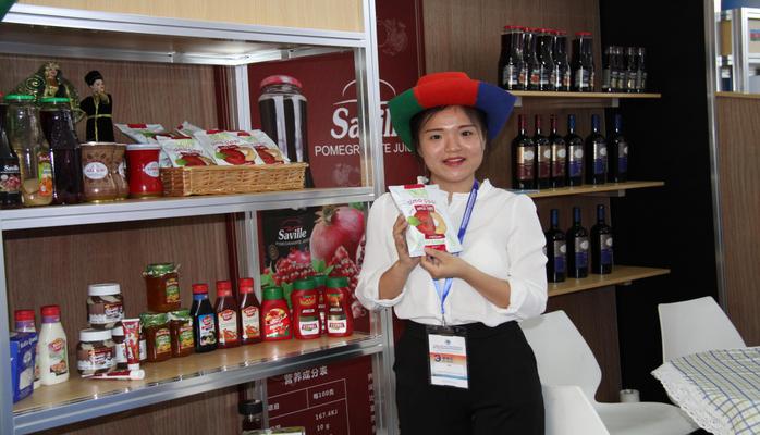 İkinci pavilyonda isə "Made in Azerbaijan" brendi ilə istehsal olunan ixracyönümlü və rəqabətqabiliyyətli məhsullar – şərab və digər spirtli içkilər, quru meyvələr, zəfəran, mineral sular, meyvə şirələri, çay, mürəbbələr təqdim edilir. Xüsusi vurğulamaq lazımdır ki, sərgidə Azərbaycan məhsullarını şirkətlərimizin bu ölkədəki nümayəndəlikləri ilə yanaşı, onların Çindəki tərəfdaşları, Azərbaycan məhsullarının idxalçıları, habelə Lucou şəhərindəki "Azərbaycan Ticarət Evi" vasitəsi ilə nümayiş olunur.