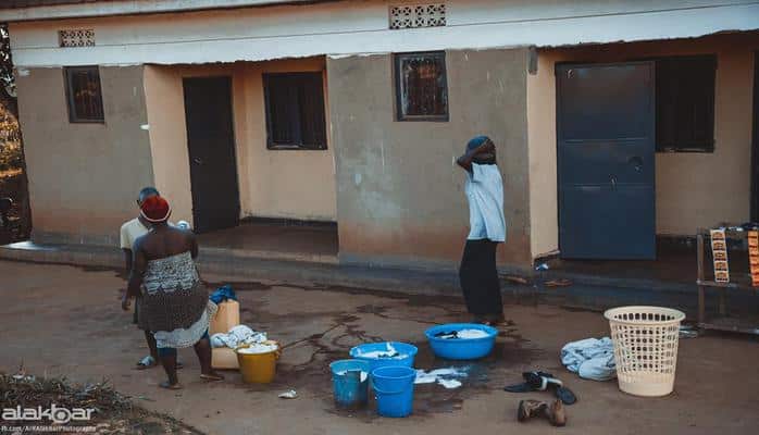 Evlərinin qabağında paltaryuma anları. Qeyd edim ki, böyüklərin əyni-başı əksər hallrda çox səliqəli və təmiz görünürdü