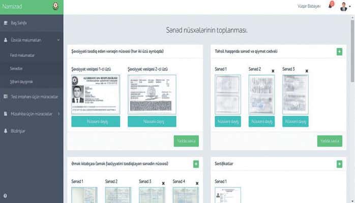 Müsabiqələrdə iştirak etmək üçün namizədlər qanunvericilikdə nəzərdə tutulmuş müvafiq sənədlərin skan edilmiş surətlərini istənilən vaxt “şəxsi kabinet”ə yükləyə biləcəklər. Bu da namizədlərə aid məlumatların düzgünlüyünün yoxlanılmasının həyata keçirilməsini təmin edəcək, saysız-hesabsız sənədlərin toplanılması prosesi, habelə sənəd qəbulu üçün yaranan növbələr aradan qalxacaq. Proqram təminatı namizədin elektron şəxsi işinin yaradılmasına imkan verir ki, bu da kağız və digər dəftərxana ləvazimatlarına qənaət edilməsini, namizədlərin dövlət qulluğuna qəbulunun mümkünlüyünün daha operativ yoxlanılmasını və müsabiqələrin ən azı 1 ay tez yekunlaşdırılmasını təmin edəcək.