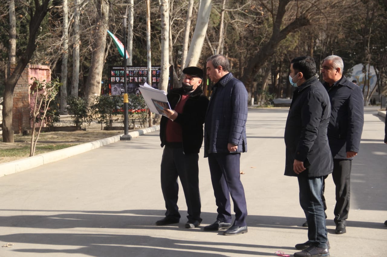 Niyazi Bayramov abidəyə baxış keçirib və şəhərdə dahi şəxsiyyətlərə ucaldılan abidələrin bərpası ilə bağlı müvafiq tapşırılqar verib. Bununla yanaşı şəhər rəhbəri, Gəncənin Heydər Əliyev adına Meydanında gül kollarının yenilənməsinə, qanusuz tikintilərə qarşı reydlərin keçirilməsinə, səkilərin bərpasına dair də öz tapşırılqarını verib.