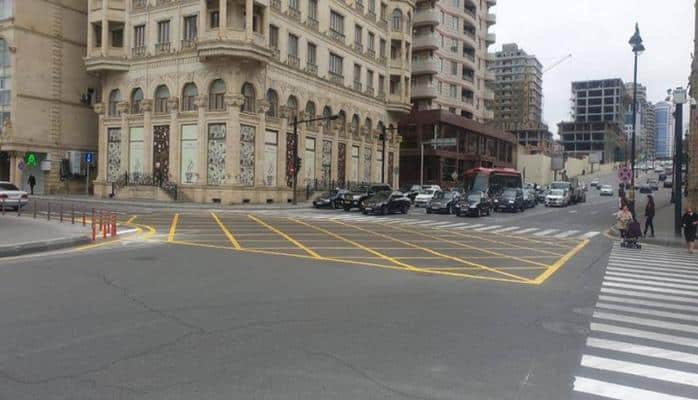 Paytaxtın daha bir kəsişməsində sarı kəsişmə toru nişanlanması təşkil edilib