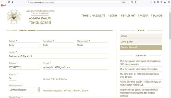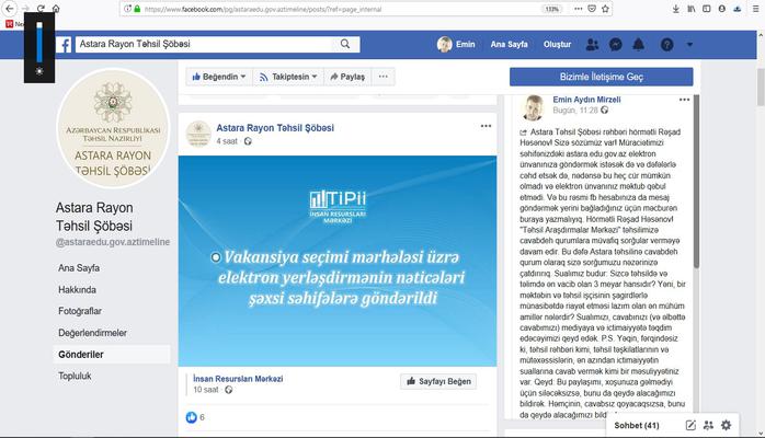 Məktubumuzu, Astara Təhsil Şöbəsinin rəsmi elektron ünvanına (astara@edu.gov.az) dəfələrlə və müxtəlif vaxtlarda göndərməyə çalışsaq da, sonda məlum olmuşdur ki, sistem məhz bu cür qurulubdur ki, məktub göndərmək mümkün olmasın. Daha sonra, Astara Təhsil Şöbəsinin rəsmi feysbuk hesabının mesaj bölməsinə göndərmək istəsək də, mesaj yerinin də bağlı olduğu məlum olmuşdur.. Növbəti dəfə isə Rəşad Həsənovun feysbukdakı profilinə dostluq göndərsək də, dostluq, rədd edilmişdir və sonra mesaj da göndərsək də, uzun zamandır ki, heç bir cavab almamışıq. Qeyd edək ki, sualımızı həmçinin Təhil Şöbəsinin rəsmi səhifəsində paylaşsaq da, yenə heç bir cavab gəlməyibdir. Həmçinin, rayonun aktiv səhifələrindən olan “Astaranın Gənc Alimləri” səhifəsində bir qrup astaralı gənc alim də Rəşad Həsənova rayon təhsilindəki problemlərlə əlaqədar müraciət etmiş və görüş istəmiş, lakin bu da cavabsız qalmışdır.