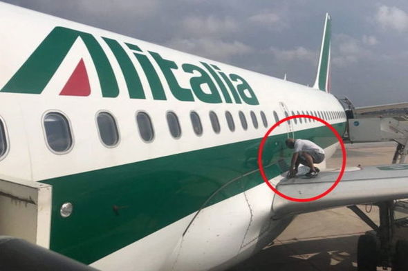“Alitalia” sərnişinləri aviaşirkətin əməkdaşlarının uçuşa hazırlaşan təyyarənin nasaz yerini yapışqan lentlə bağlamasının görüntülərini yayıblar.
