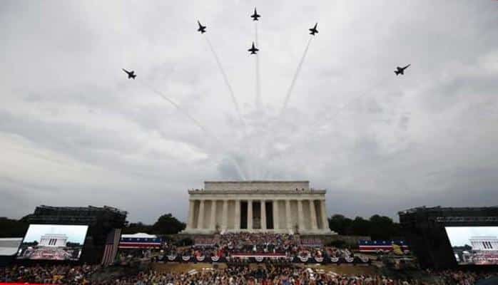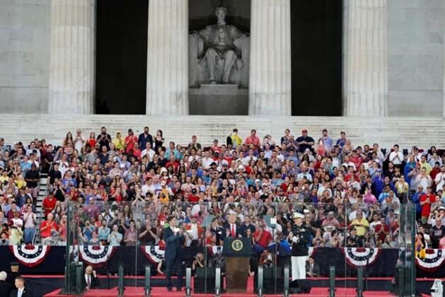 Axşamüstü isə tank və döyüş təyyarələrinin yer aldığı xüsusi nümayişdə Tramp 70 illik ənənəni pozaraq Ağ Evdə deyil, Linkoln Abidəsi önündə xalqa səslənib.