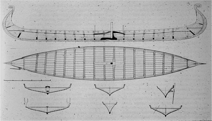 Bu gəmi tərkib hissələri ilə birgə torpaqdan çıxarılmışdır və hazırda Osloda “Vikinqlər muzeyi”ndə saxlanılır. Dendroxronoloji məlumatlara görə, gəmi təqribən 820-ci ildə suya buraxılmış və 834-cü ilə qədər sahilyanı naviqasiya üçün istifadə olunmuşdur.