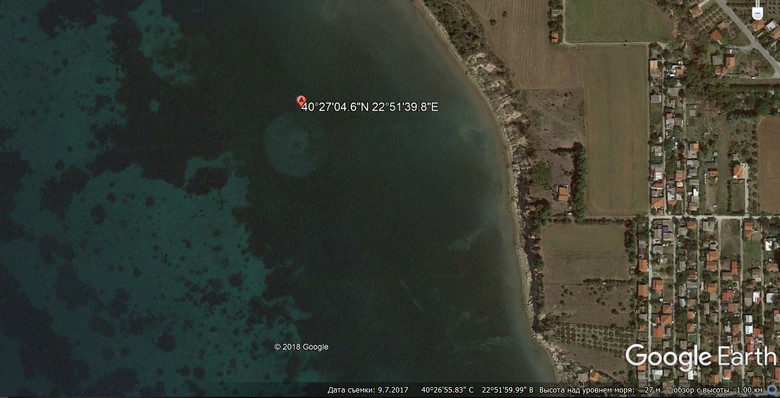 “Ölkə.Az” xəbər verir ki, “Google Earth” xəritəsində müəmmalı obyekt tapılıb. Obyekt Egey dənizində, Yunanıstan sahillərindən bir az aralı, Saloniki kurort şəhərindədir.