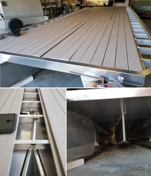 Палубу для управляемой понтонной лодки со стандартной комплектацией и двигателем Suzuki мощностью 115 л.с. (85 кВт) мужчина сделал сам, чтобы ее можно было сужать до 2,6 м. Внедрения оказались очень важными, ведь с такой шириной конструкцию можно разместить на обычном прицепе для транспортировки легковым автомобилем. В противном случае нужно было бы оформлять дополнительные разрешения.