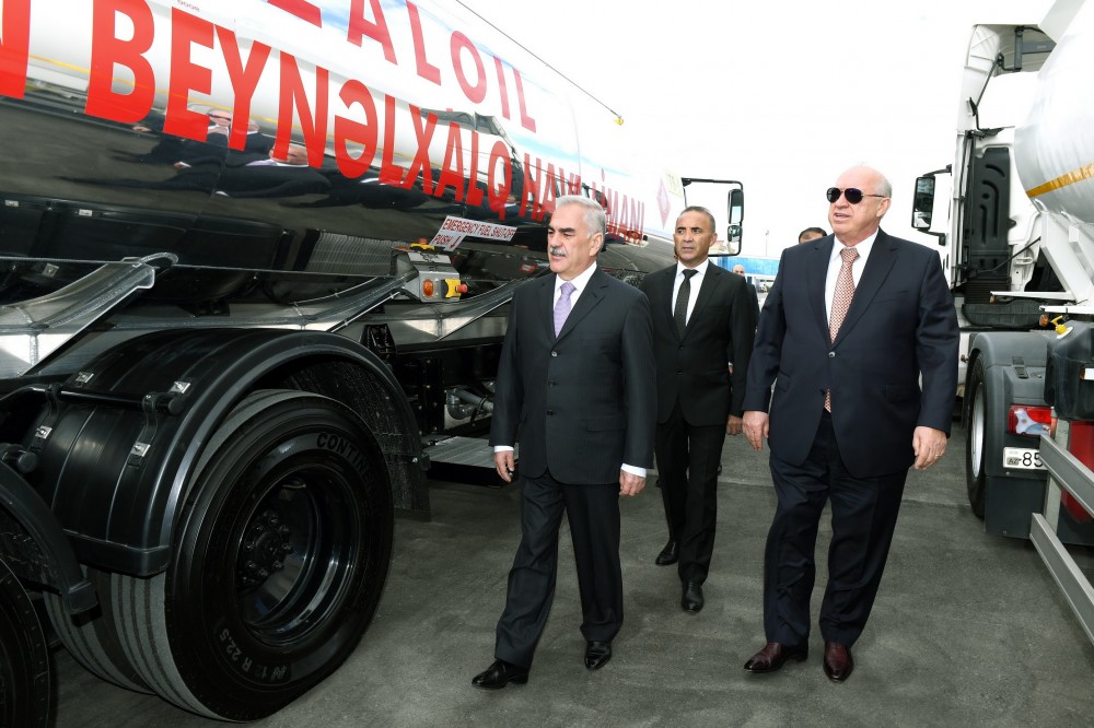Председатель Верховного Меджлиса Нахчыванской Автономной Республики Васиф Талыбов и президент Закрытого акционерного общества «Азербайджан Хава Йоллары» Джахангир Аскеров посмотрели машины, механизмы и служебные автомобили.