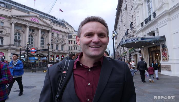 Метью называет себя футбольным болельщиком, но на вопрос о "Карабахе" запинается, недоуменно хлопая глазами. "Напомните мне о команде", - просит он. Получив сведения, наш собеседник восклицает: "Ах, да, Азербайджан… Конечно, я наслышан об этой стране. Особенно припоминаю международные турниры. Mне кажется, победа будет за "Aрсеналом". Шансы азербайджанской команды призрачны. Возможно, учитывая проведение матча в Баку, перед "Карабахом" и замаячит призрак победы, но такое маловероятно", - спешит добавить он.