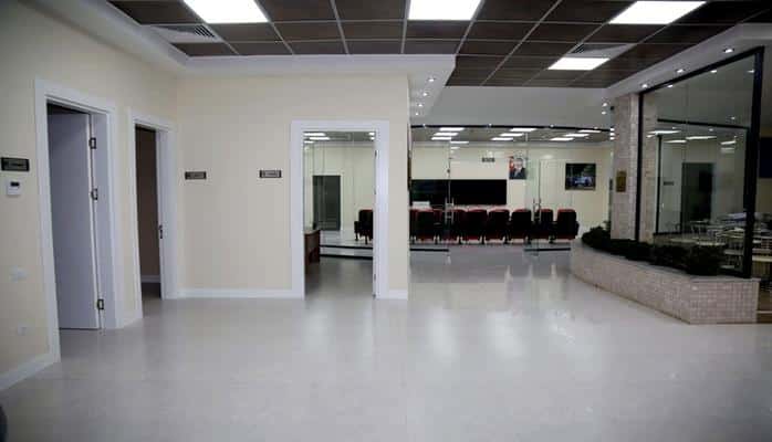 Руководство министерства ознакомилось с комнатами для инженеров, операторов-пилотов, анализа полетов, симуляторных тренажеров, а также другими служебными и административными помещениями.