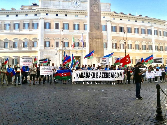 С целью доведения до властей, членов парламента, местной общественности Италии информации о военной провокации, осуществленной вооруженными силами Армении на Товузском направлении государственной границы, и продолжающейся более 30 лет агрессии Армении против Азербайджана, а также для выражения поддержки азербайджанской армии, наши соотечественники, проживающие в Италии, провели санкционированную акцию перед зданием парламента этой страны.