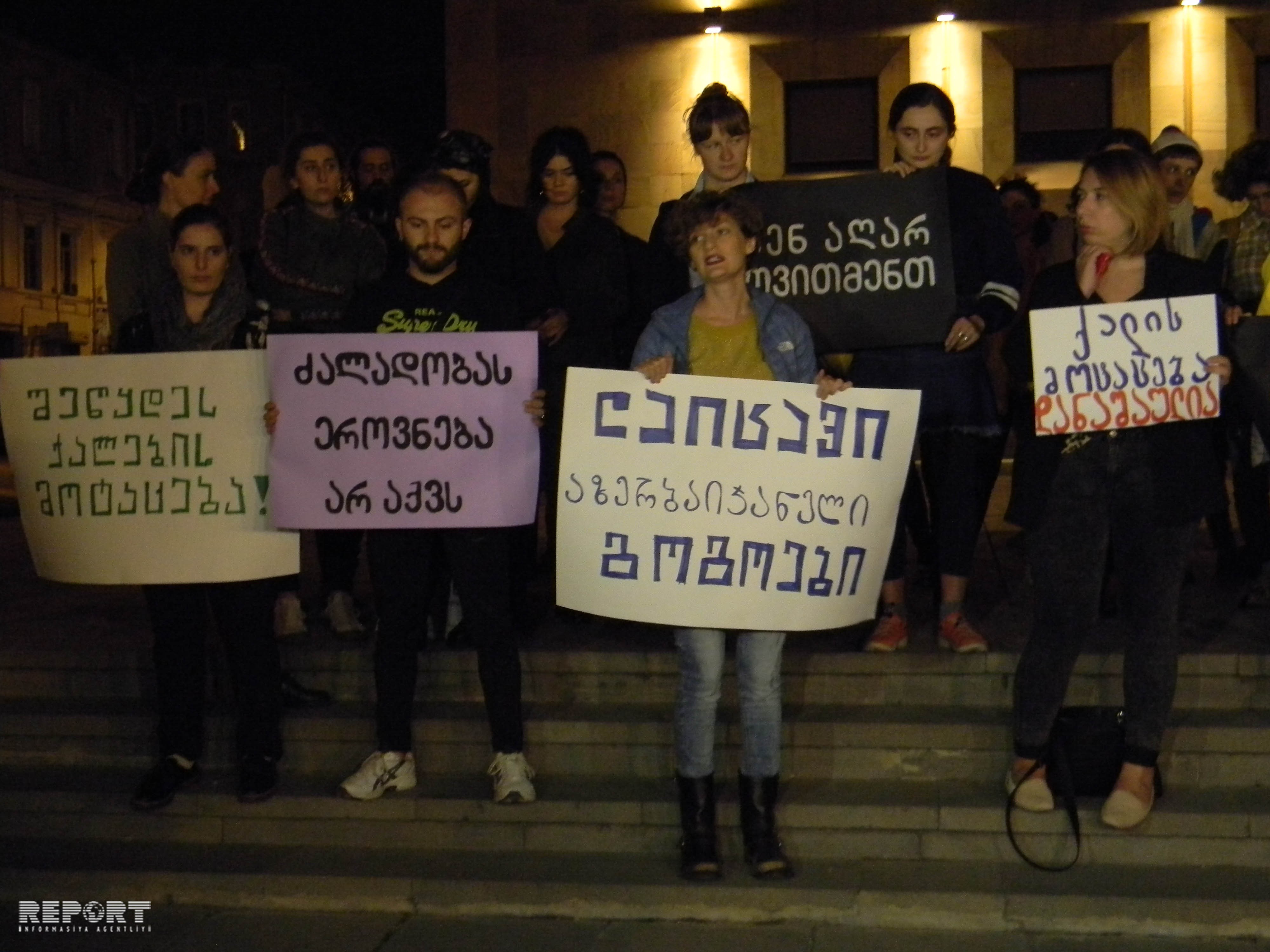 Как сообщает местное бюро Report, в акции, организованной Женским движением в Грузии, выражен протест отсутствию результатов полиции по поиску похищенной 12 октября 17-летней азербайджанки в селе Лембели Сагареджойского муниципалитета.