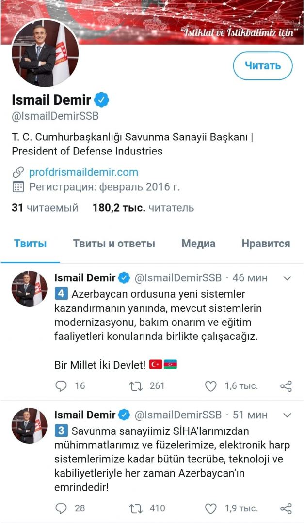Kак сообщает Ens.az со ссылкой на Trend, об этом на своей странице в Twitter написал Исмаил Демир.