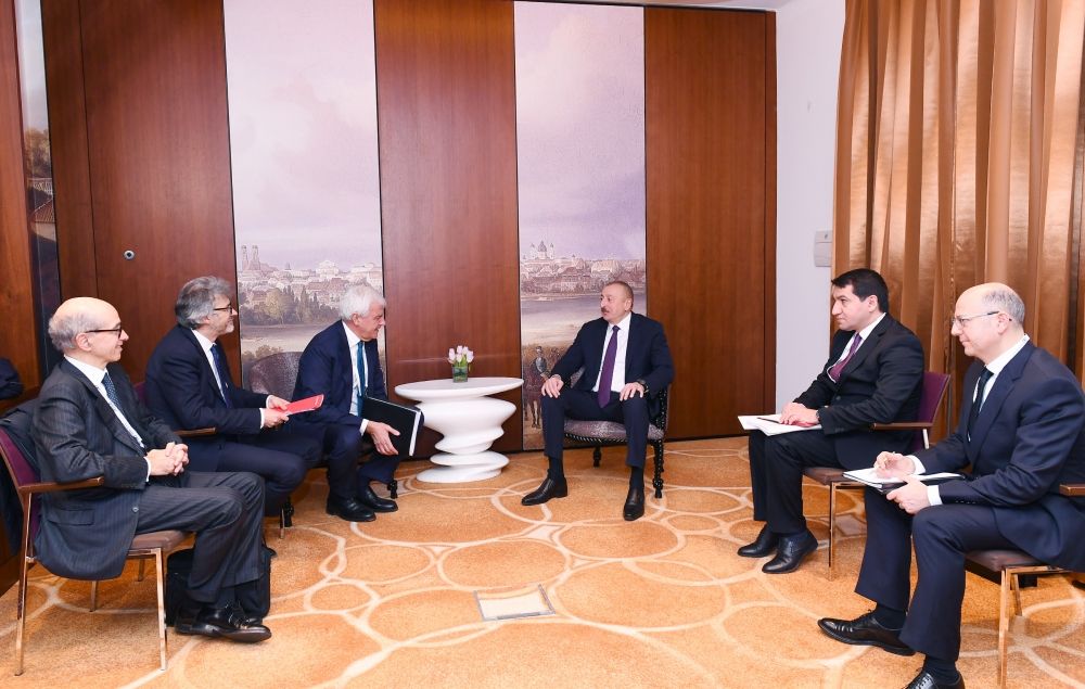 Президент Азербайджана Ильхам Алиев в пятницу встретился в Мюнхене с генеральным исполнительным директором компании "Леонардо" Алессандро Профумо.