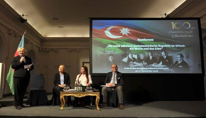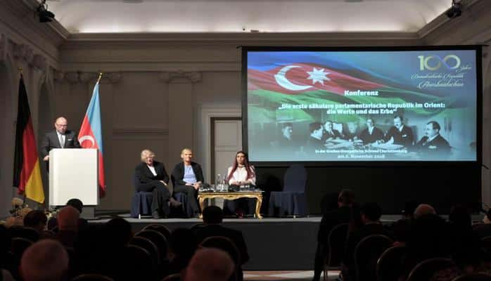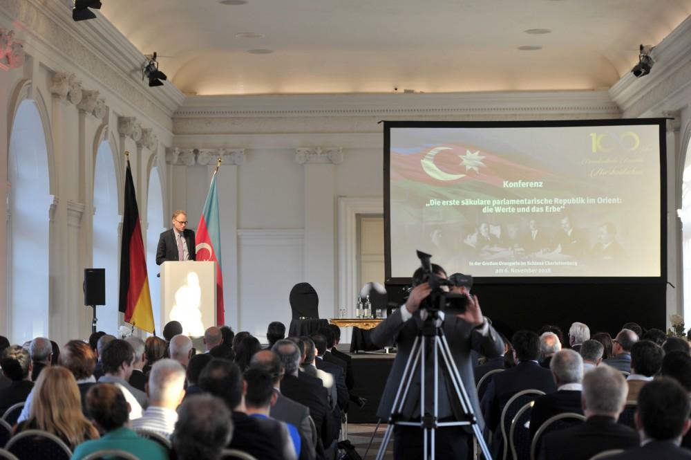 Шестого ноября во дворце Шарлоттенбург немецкой столицы при организационной поддержке Фонда Гейдара Алиева и посольства Азербайджанской Республики в ФРГ состоялась научная конференция под названием "Первая светская парламентская республика на Востоке: ценности и наследие", посвященная 100-летней годовщине образования АДР (1918-1920 гг.).
