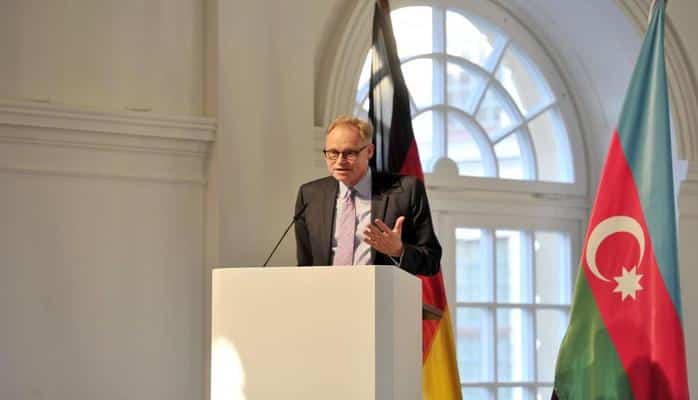 С приветственной речью к участникам обратились посол Азербайджана в Германии Рамин Гасанов и координатор МИД ФРГ по Восточной Европе, Кавказу и Центральной Азии Майкл Зиберт.