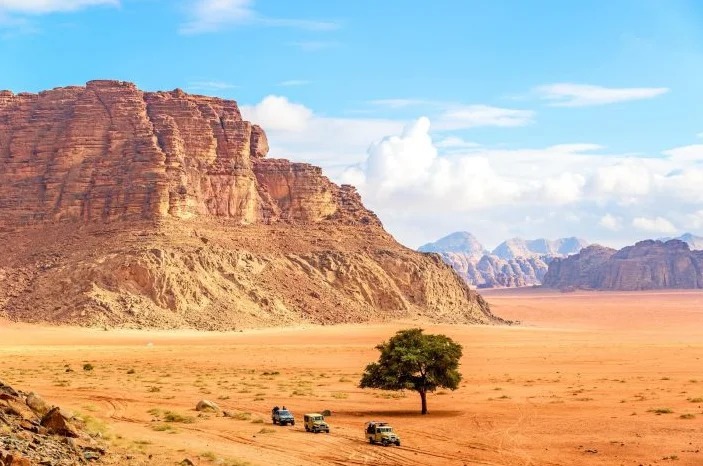 В пустыне Вади-Рам можно насладиться невероятно красочными скальными образованиями. Пустыня также является популярным направлением среди туристов из-за расположенного здесь древнего скального города Петра.