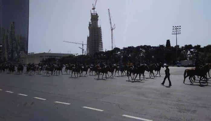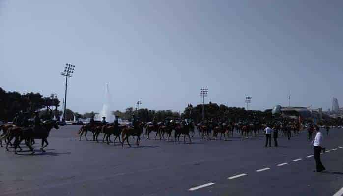 В рамках этого в среду, 5 августа, на площади Азадлыг в центре столицы состоялась репетиция парада, в ходе которой по площади на лошадях прошли военнослужащие Государственной пограничной службы и военный оркестр.