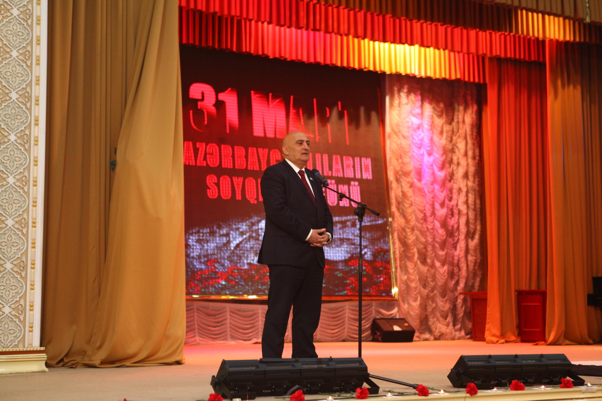 Ректор БГУ Эльчин Бабаев проинформировал о целенаправленной политике геноцида, проводимый армянами против нашего народа различными методами и путями в разные периоды истории. Ректор отметил, что впервые на государственном уровне политическая оценка мартовской резне 1918 года была дана Указом общенационального лидера Гейдара Алиева «О геноциде азербайджанцев», подписанным 26 марта 1998 года. По словам Э.Бабаева, в последние 20 лет наша страна в информационной войне уверенно, доказательствами и фактами доводит правду истории международному сообществу.